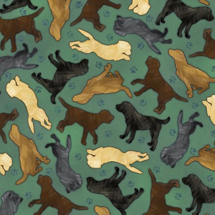 Quilting Treasures - For The Love of Labs - Dog Silhouettes, Eucalyptus