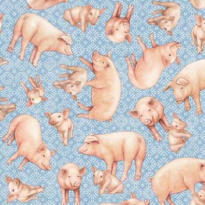Quilting Treasures - Greener Pastures - Pigs, Blue