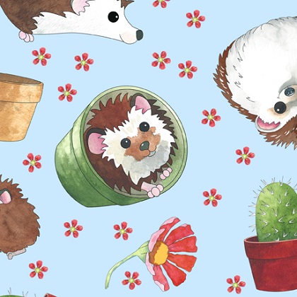Quilting Treasures - Who Let the Hogs Out - Hedgehog Toss, Blue