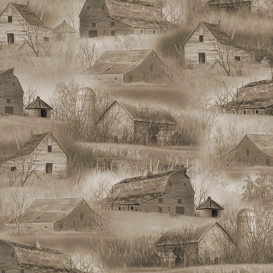 Quilting Treasures - Wild Pheasants - Barns & Houses, Khaki