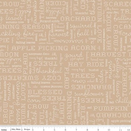 Autumn by Lori Holt of Bee in my Bonnet for Riley Blake Designs is great for quilting, apparel and home décor, This print features fall-themed text.