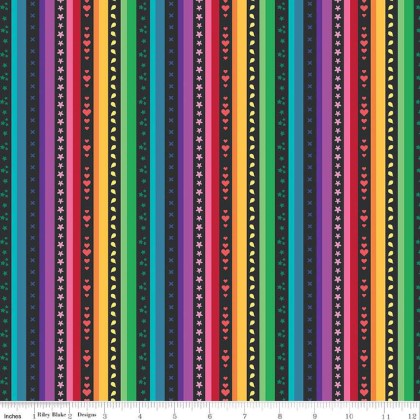 Bloom by Kristy Lea of Quiet Play for Riley Blake Designs is great for quilting, apparel and home décor. This print features colorful stripes with hearts, stars, flowers, and more.
