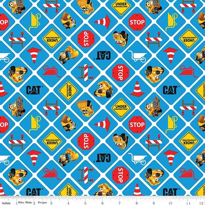 The CAT® Buildin' Crew collection is great for quilting, apparel and home décor. This print features construction elements, CAT® Wigglers, and the CAT® logo in a grid pattern.