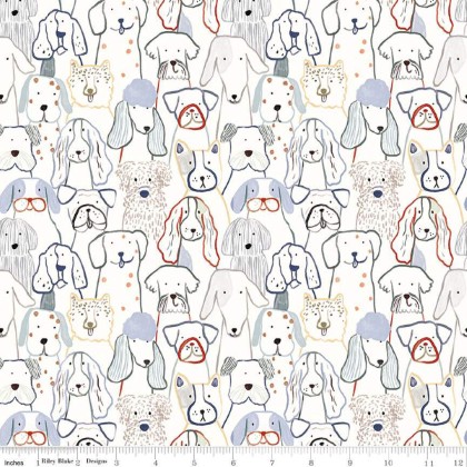 Riley Blake - Designer Flannel - Inky Dog Club, White