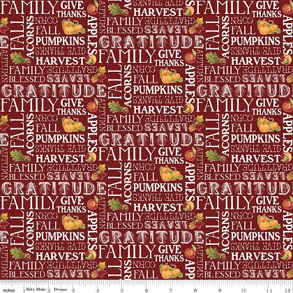 Riley Blake - Monthly Placemats - November Text, Barn Red