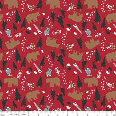 Riley Blake - Woodsman - Bears, Campfires, Trees, Red