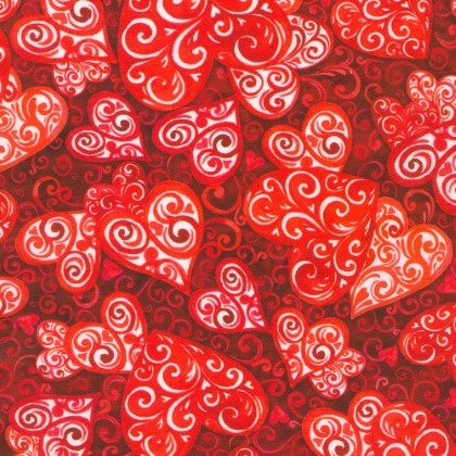 Robert Kaufman - Lovely Day - Red Hearts, Dark Red
