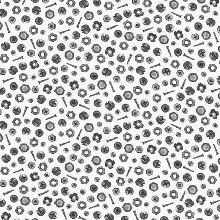 Robert Kaufman - On The Road - Bolts & Nuts, White