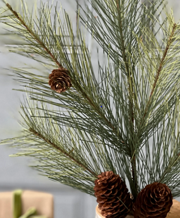 The Southern Pine features a wonderful mix of needle lengths and colors. It also has a variety of natural dual sized pine cones that contributes to its woodsy feel.