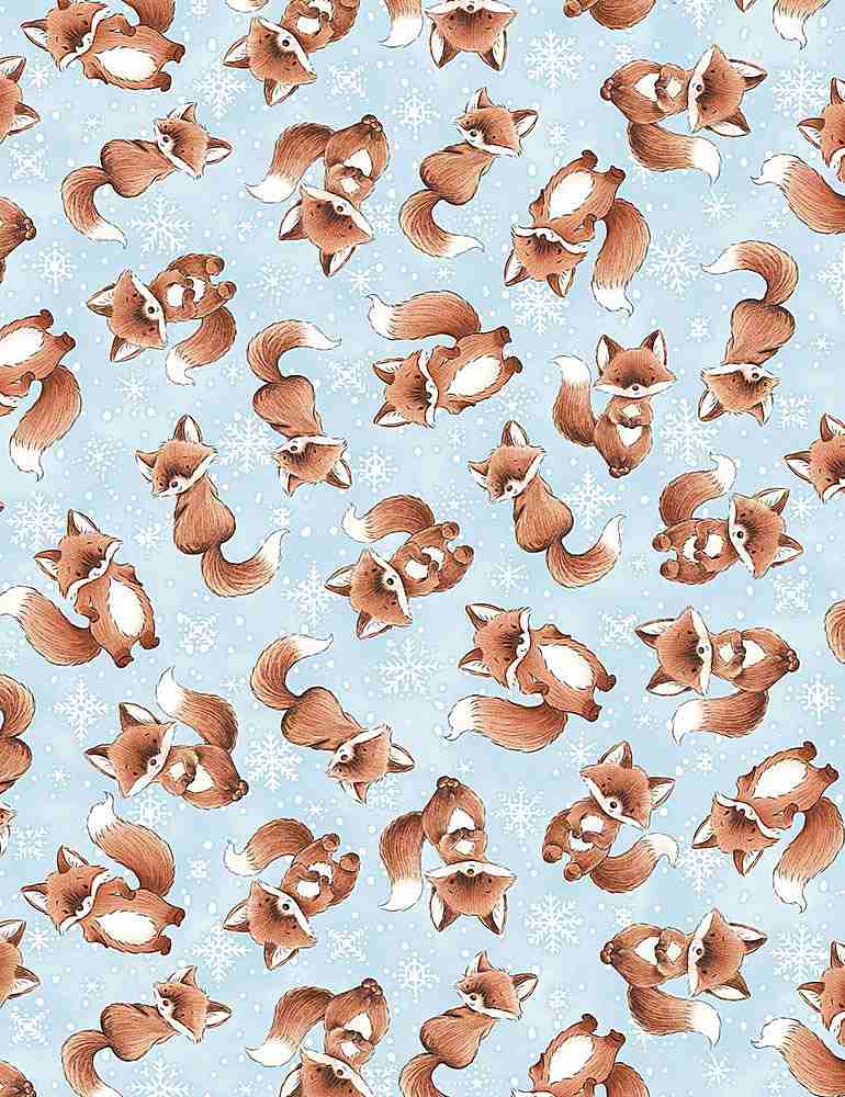 Timeless Treasures - Bunnies Snow Day - Tossed Winter Foxes, Blue