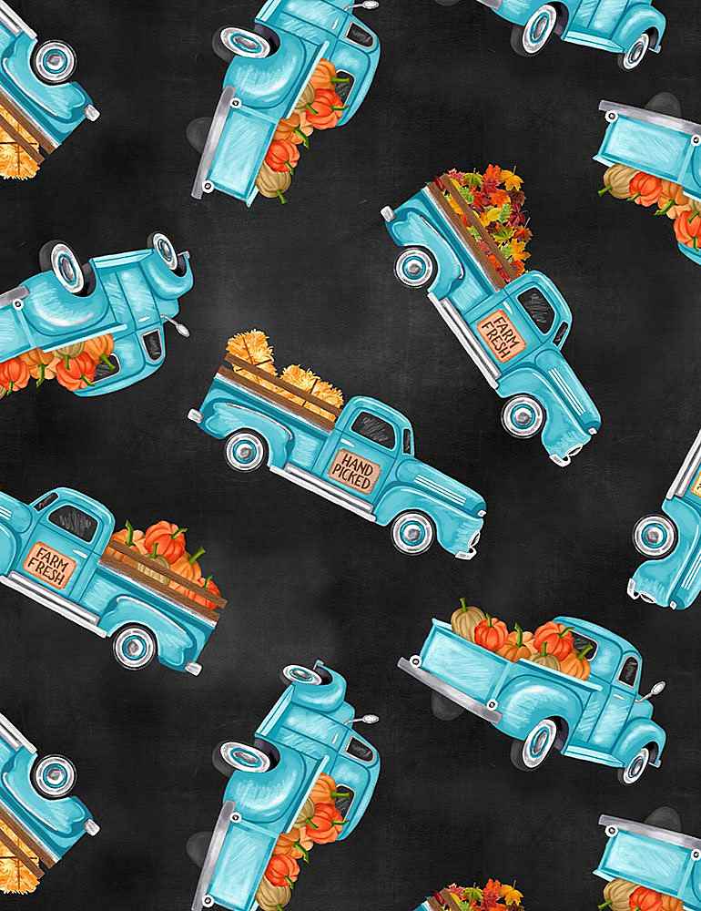 Timeless Treasures - Happy Harvest - Blue Trucks, Black