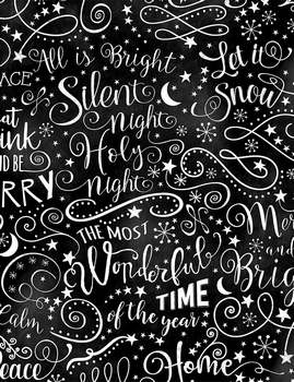 Timeless Treasures - Silent Night - Chalk Words, Black