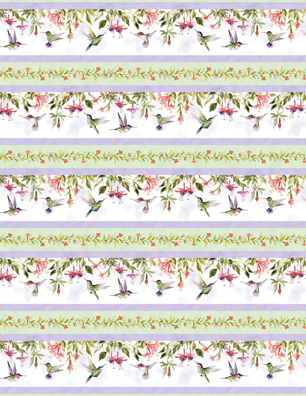 Wilmington Prints - Hummingbird Floral - Repeating Stripe, Multi