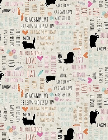 Wilmington Prints - Purrfect Partners - Word Toss, Cream