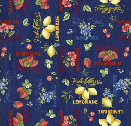 Wilmington Prints - The Berry Best - Fruit Labels Allover, Navy