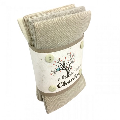 Our Chunks give you the choice of 5 different colors & patterns for your large or smaller project. These wonderful colorfast wools are great for penny rugs, appliques, and other imaginative designs. All of our wools are 100% Wool, felted and ready to use.