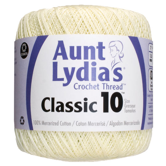 Aunt Lydia's Classic Crochet Cotton Thread Size 10 Article 154 - 3 Ply is the most well know crochet thread on the market today. This high luster mercerized cotton crochet thread is perfect for crochet projects both large and small. This thread is available in a wide range of fashion solids, neutral basics and alluring multi-colors that are ideal for home decorating and fashion projects. Article 154 is a size 10, bedspread weight,