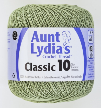 Aunt Lydia's Classic Crochet Cotton Thread Size 10 Article 154 - 3 Ply is the most well know crochet thread on the market today. This high luster mercerized cotton crochet thread is perfect for crochet projects both large and small. This thread is available in a wide range of fashion solids, neutral basics and alluring multi-colors that are ideal for home decorating and fashion projects. Article 154 is a size 10, bedspread weight,