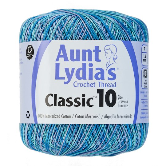 Aunt Lydia's Classic Crochet Cotton Thread Size 10 Article 154 - 3 Ply is the most well know crochet thread on the market today. This high luster mercerized cotton crochet thread is perfect for crochet projects both large and small. This thread is available in a wide range of fashion solids, neutral basics and alluring multi-colors that are ideal for home decorating and fashion projects. Article 154 is a size 10, bedspread weight,