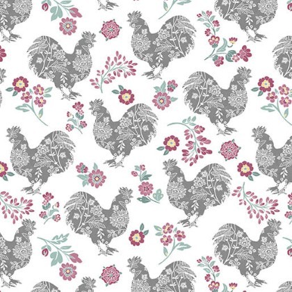 Benartex Artistry - Chalk Barn - Roosters, Charcoal