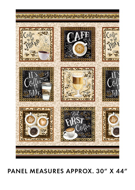 Benartex Kanvas - For The Love of Coffee - 24" Coffee Time Panel, Neutral