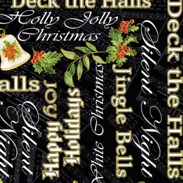 Benartex Kanvas Studio - Christmas Musical - Joyous Words, Black