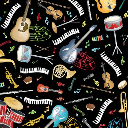 Benartex Kanvas Studio - Making Music - Musical Instruments, Black