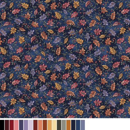 /Shopping/Fabric/Fabric (Shop By Manufacturer)/Benartex Traditions/Autumn Breeze/Benartex Traditions - Autumn Breeze - Dancing Leaves, Navy