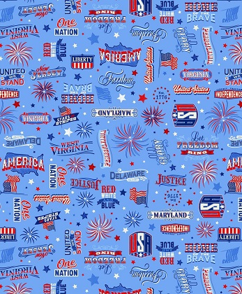Benartex Traditions - Mid-Atlantic Shop Hop '25 - Patriotic Words, Medium Blue