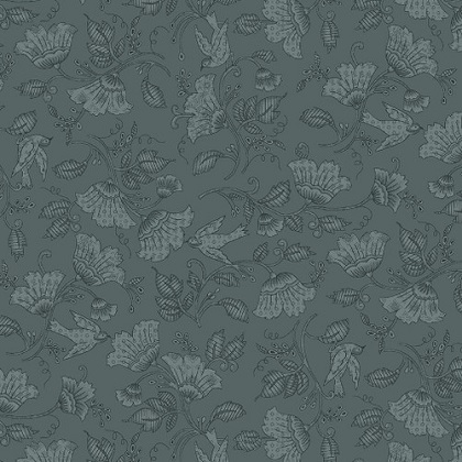 Courtney by Missie Carpenter is a new toile inspired 108" quilt backing featuring a floral pattern including leaves and birds.