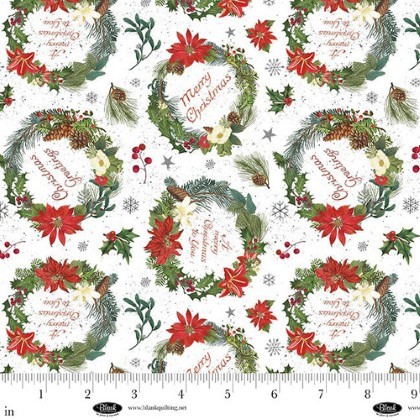 Blank Quilting - Be Merry & Shine Bright - Wreaths, White