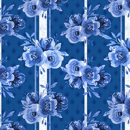Blank Quilting - Blue Jubilee - Floral on Stripes, Dark Blue