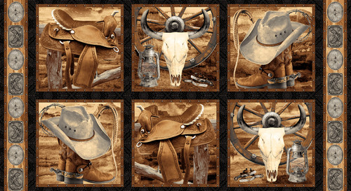 Blank Quilting - Cowboy Culture - Cowboy Blocks 24" Panel, Brown