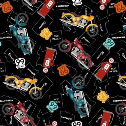 Blank Quilting - Cruisin' the Open Road - Motorcycles, Black