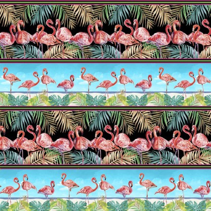 Be a Flock Star when you put together a colorful quilt with this new group by Lucca Sheppard. Sunny days call for palm trees to provide some shade. Flamingoes stand tall on the beach as they embrace the cool summer breeze. Hibiscuses bloom showing off their bright colors and emitting their sweet floral scent. Use the blocks and panel in this group to create a summer quilt. Let your projects created with Be a Flock Star stand out from the flock.