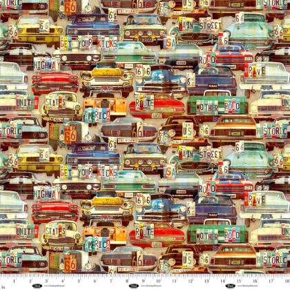 Blank Quilting - Historic Highway - Retro Cars and License Plates, Multi