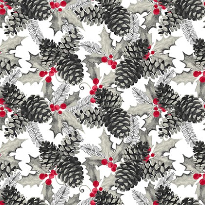Blank Quilting - Holiday Style - Pinecones, Light Gray