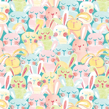 Cute bunnies abound in this collection. Colored in soft pastel colors like yellow, coral, aqua and green, these fabrics are perfect for Spring and Easter projects. The patterns feature bunny rabbits, Easter eggs, Easter pennants, dots, circles, jelly beans, and a plaid. These fabrics are great for seasonal home décor.