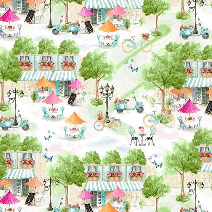 Blank Quilting - Love is in the Air - Scenic Cafes, Green
