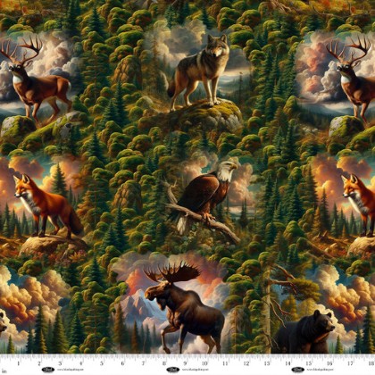 Blank Quilting - Wilderness Song - Wildlife in The Forest, Green