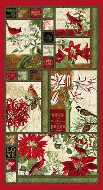 This is an elegant Christmas collection that includes beautiful winter flowers in all their glory. The group features a panel and lovely floral designs.