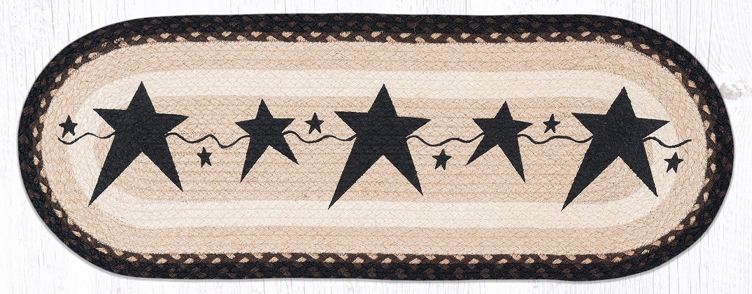 /Shopping/Rugs/Braided Accessories/Earth Rugs/Braided Accessories/Braided Tablerunners/Braided Tablerunner - Black (Primitive Stars), 13" X 36" (Oval)