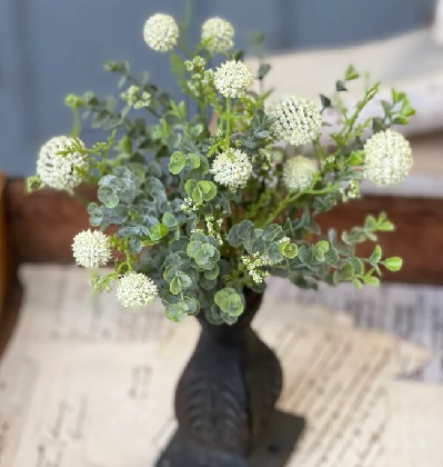 A popular collection featuring coated allium spheres, green foliage and petite clusters of tiny bubble berries.