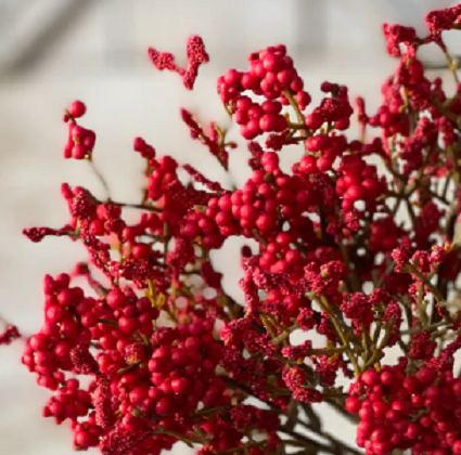Bounties of beautiful scarlet berries (bubble berry clusters and tiny bubble berries) top branching stems for a wonderful punch of festive color.
