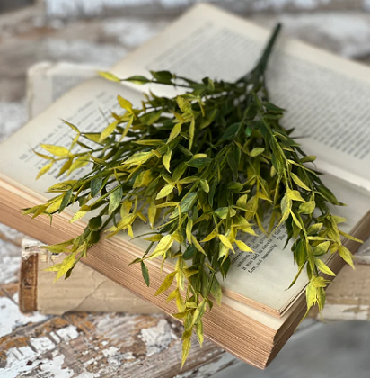 Multitudes of spear shaped leaves compose this lovely greenery. The leaves lighten to a goldish tip in an Ombre fashion making this collection even more striking.