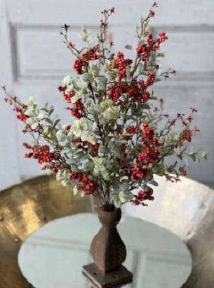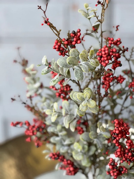 A gorgeous melody of lightly flocked eucalyptus greenery dashed with branching accents topped with bubble berry clusters and small orb-like buds.