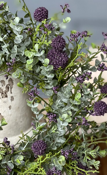 A popular collection featuring coated allium spheres, green foliage and petite clusters of tiny bubble berries.
