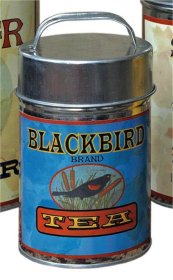 The Vintage Canister by Ohio Wholesale is made of natural metal that include metal lids with handles. It is 6-1/2 inches tall with a diameter of 3-3/4 inches and has a label that reads "Blackbird Brand Tea." It is the smallest of 4 in it's set and when used together they nest inside one another for easy storage. They are sold individually - collect all four! (For Decorative Use Only)