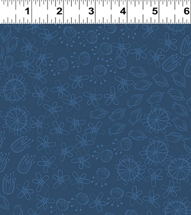 Clothworks - Crocodile Smiles - Floral Linework, Light Navy