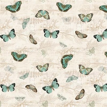 Clothworks - En Bleu - Tossed Butterflies, Light Cream